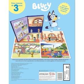 Bluey é uma cachorrinha que adora brincar e inventar jogos divertidos. Junto de seus amigos e família, a diversão não tem fim Vamos Brincar é um livro superdivertido, com lindas ilustrações, um cenário gigante e 10 miniaturas incríveis - Essa série não só oferece um bom momento de leitura como propicia, ao fazer uso do material encartado, que o pequeno leitor torne-se protagonista, passando a recontar a história e a inventar enredos; - As obras são compostas de temáticas de aventura, fazendo com que possa ser explorada por mais de uma criança em simultâneo, o que multiplica as possibilidades criativas do material; - A série Miniaturas ainda inclui um cenário gigante, possibilitando que os personagens sejam explorados de diversas formas.