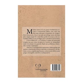 O Livro Comentário Bíblico Coríntios 1 e 2 Matthew Henry é uma obra essencial para aqueles que desejam aprofundar seu conhecimento sobre a Bíblia. Com seu autor renomado, Matthew Henry, este livro oferece um comentário detalhado e minucioso sobre os livros de 1 e 2 Coríntios, trazendo insights valiosos para os estudiosos da Escritura.