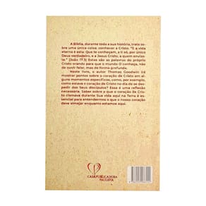 A bíblia durante toda a sua história, trata sobre uma única coisa: conhecer a cristo. E a vida eterna é esta: que te conheçam, a ti só, por único deus verdadeiro, e a jesus cristo, a quem enviaste. joão 17.3 . Estas são as palavras do próprio cristo orando para que o mundo o conheça, não de ouvir falar, mas de forma profunda. Neste livro, o autor thomas goodwin irá mostrar pontos sobre o coração de cristo em alguns momentos específicos, como, por exemplo, como estava o coração de cristo no dia de se despedir dos seus discípulos essa é uma reflexão necessária. Saber sobre o que o coração de cristo clamava durante sua vida aqui na terra é essencial para entendermos o que o nosso coração deve almejar enquanto estamos aqui. Marca: Não Informado