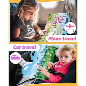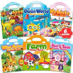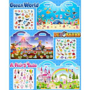 - Livro de adesivos reutilizável para crianças de 1 a 3 anos: o livro de adesivos é feito com material de PVC impermeável e reutilizável e contém 6 temas diferentes.