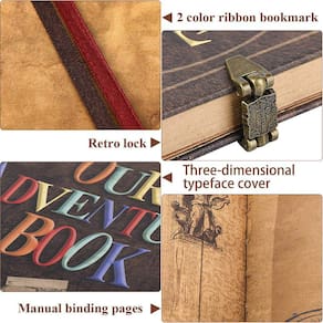 - 💓 Especificações: livro de aventura com comprimento 7,67 x largura 8,66 x altura 0,9 polegadas (73 folhas/146 páginas), álbum de fotos x1, caixa de presente requintada x1, vários cartões de favoritos, vários adesivos. Tem um tamanho perfeito e você pode colocá-lo em uma mochila enquanto viaja.