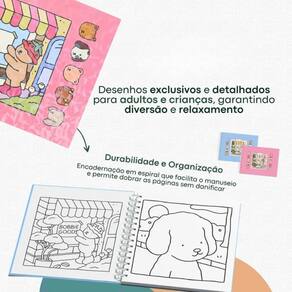 Interior: Papel offset ideal para lápis de cor, giz de cera ou canetinha touch