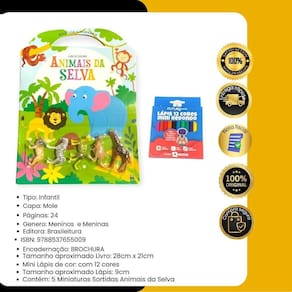 Contém : 1 unidade livro infantil de colorir animais da selva mais cor e diversão com 5 mini animais + 12 mini lápis de cor