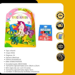Miniaturas inclusas: além de colorir, as crianças poderão brincar com cinco miniaturas de unicórnios, proporcionando uma experiência interativa que une arte e brincadeira.