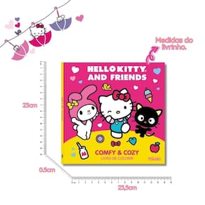 Livro de Colorir Infantil Hello Kitty And Friends Color Book - Sanrio Entre no mundo encantador da Hello Kitty e seus amigos Este não é apenas um livro de colorir, é um convite para um dia delicioso e cheio de amizade. Junte-se à Hello Kitty, My Melody, Cinnamoroll e toda a turma em cenas adoráveis que aquecem o coração. Pegue seus lápis de cor e traga ainda mais alegria para o universo fofo que todos nós amamos. Características: - 24 Páginas para Colorir - Encadernamento Brochura - Produto Oficial Licenciado - Papel Resistente - Suporta Lápis de Cor, Canetinhas Bobbie Goods e Giz de Cera - Atividade Lúdica para Aprendizado das Cores Especificações: - Marca: Sanrio - Medidas Aprox. axl : 24cm x 24cm - Quantidade de páginas: 24 folhas - Tema do livro: Hello Kitty - Cor: Rosa/Amarelo - Tipo de encadernamento: Brochura Conteúdo da Embalagem: - 978-85-5758-454-9 - 1x Livro de Colorir Hello Kitty And Friends Comfy & Cozy - Sanrio As cores podem variar entre as imagens mostradas acima e o produto. Imagens meramente ilustrativas. Todas as informações divulgadas são de responsabilidade exclusiva do fabricante. de 90 dias contra defeito de fabricação. Marca: Não Informado Ean: 9788557584549