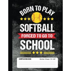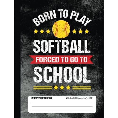Livro de composição Born to Play Softball Forced To Go To School: caderno escolar forrado engraçado, presente de diário para jogadores e estudantes de softball (réplica larga, 100 páginas, 7,44 x 9,69)