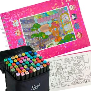 Este kit já acompanha um conjunto com 60 canetinhas coloridas, ou seja, você não precisa se preocupar com nada! É só abrir e começar a colorir!
