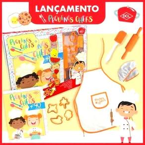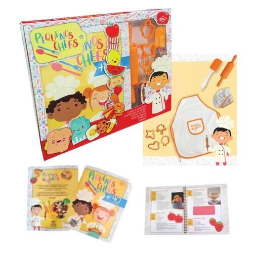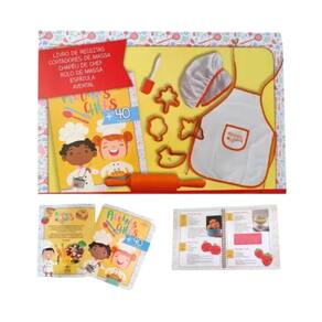 Prepare-se para explorar o mundo da culinária de forma divertida e educativa ===================================== Contém: 01 Livro de Receitas 01 Cortador de Massa 01 Chapéu de Chef 01 Rolo de Massa 01 Avental 01 Espátula