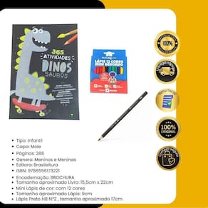 Contém : 1 unidade Livro Infantil 365 Atividades Educativas Aprenda em Casa + 12 unidades mini lápis de cor + 1 lápis grafite 2/HB. Uma seleção de atividades de raciocínio matemático, associação e memorização, além de outros enfoques estão reunidas para divertir, instruir e estimular a criatividade e imaginação dos pequenos e vorazes leitores. Esta obra contém atividades de coordenação motora, letras, palavras, escrita, opostos, formas, números, operações matemáticas, desenhos para colorir, caça-palavras, Cruzadinhas, labirintos, ligação de ponto e muito mais Complete o aprendizado da criança, de forma lúdica, flexível e progressiva. Habilidades desenvolvidas: - Estímulo visual; - Concentração; - Coordenação motora; - Criatividade e Imaginação; - Reduz e ansiedade. Autor: Todolivro Páginas: 288 Dimensões: 15,5 x 22 cm Formato: Brochura Faixa etária: 5 anos. Marca: BrasiLeitura Faixa etária: A partir de 5 anos ISBN: 9786556173221 Editora: BrasiLeitura Dimensões: 15.50 x 22.00 cm Idioma: Português Diversão Garantida: Com 365 atividades emocionantes, o livro promete transformar cada dia em uma nova aventura cheia de diversão e aprendizado. Desenvolvimento Criativo: Estimula a criatividade das crianças através de jogos, labirintos e desafios que incentivam a imaginação e o pensamento crítico. Variedade de Jogos: Oferece uma ampla variedade de atividades, garantindo que as crianças nunca fiquem entediadas e sempre tenham algo diferente para explorar. Qual é a medida de cada lápis de cor Cada lápis possui 9 cm de comprimento, um tamanho ideal para as mãos pequenas das crianças, facilitando o manuseio. Qual é a medida de lápis hb Possui 17 cm de comprimento.