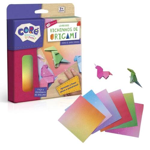 Ideal para crianças a partir de 7 anos, o kit ensina a fazer origamis inspirados em dinossauros e unicórnios com instruções passo a passo e fábulas ilustradas que acompanham cada bichinho.