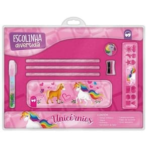 Estão prontos para explorar um mundo vibrante de cores e desafios Este Kit de Materiais escolares apresenta um livro de Unicórnios que não apenas diverte, mas também oferece uma série de atividades que estimulam o raciocínio. É o equilíbrio ideal entre aprendizado e diversão. Inclui01 livro de atividades educativo01 estojo metálico01 régua01 borracha divertida01 apontador de lápis01 caneta borracha03 lápis de escrever Desenvolvimento de HabilidadesCoordenação Motora, Habilidades Artísticas, Imaginação e Criatividade, Habilidade em Escrita.