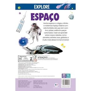 Venha explorar o mágico, infinitoe misterioso espaço sideral comeste fantástico kit, que vem com livro pôster, estêncil e peças 3D para montar. Você vai aprender sobre corpos celestes, comoplanetas, estrelas, luas, galáxias e muito mais desse incrível Universo