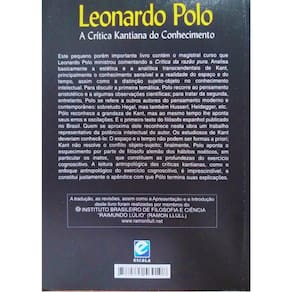 Uma obra que contém o magistral curso que Leonardo Polo ministrou comentando a “Crítica da Razão Pura”. Analisa basicamente a estética e a analítica transcendentais de Kant, principalmente o conhecimento sensível e a realidade do espaço e do tempo, assim como a distinção sujeito-objeto no conhecimento intelectual. O autor reconhece a grandeza de Kant, mas ao mesmo tempo lhe aponta seus erros e oscilações.