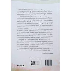 Os principais fatores que fazem homens e mulheres procurarem um especialista em cirurgia das pálpebras são excesso de pele na região periocular, sobrancelhas caídas, acidez na região dos olhos, presença de olheiras, bolsas de gordura e rugas na área ao redor dos olhos. A cirurgia plástica das pálpebras é conhecida como blefaroplastia e tem se tornado um procedimento cada vez mais procurado mundialmente, com grande repercussão nas mídias sociais, o que a torna ainda mais desejada e sonhada. Após 26 anos de experiência e intensa convivência com estética e funcionalidade oculopalpebral, Dr. André Borba decidiu contribuir com esta obra voltada ao público que deseja conhecer e/ou aprofundar-se no assunto. Com mais de 8.000 cirurgias cosméticas palpebrais realizadas ao longo da carreira, Dr. André Borba tem como foco principal desta obra responder de maneira clara e didática a dúvidas, medos e anseios que surgem diante do planejamento e tratamento da região periorbital. Estas questões devem ser esclarecidas para haver maior confiança em relação aos tratamentos propostos para cada caso, sempre de maneira personalizada. Acredita-se que o material reunido nesta obra será bastante útil como guia médico prático, contendo recomendações valiosas para um pré e pós-operatório tranquilos e seguros da cirurgia das pálpebras, bem como para definir os possíveis tratamentos complementares menos invasivos àqueles que pensam em rejuvenescer o olhar. Esperamos que este livro possa trazer segurança e tranquilidade a você, fundamentais para a tomada de decisão em relação ao seu novo olhar.