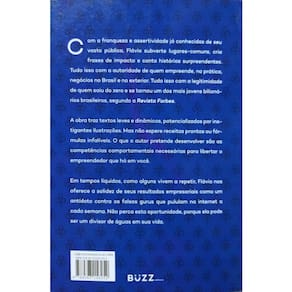 Com a franqueza e assertividade já conhecidas de seu vasto público, o autor subverte lugares-comuns, cria frases de impacto e conta histórias surpreendentes. Tudo isso com a autoridade de quem empreende, na prática, negócios no Brasil e no exterior. Tudo isso com a legitimidade de quem saiu do zero e se tornou um dos mais jovens bilionários brasileiros, segundo a Revista Forbes. A obra traz textos leves e dinâmicos, potencializados por instigantes ilustrações. Mas não espere receitas prontas ou formulas infalíveis. O que o autor pretende desenvolver são as competências comportamentais necessárias para libertar o empreendedor que há em você. Flávio procura oferecer a solidez de seus resultados empresariais como um antídoto contra os falsos gurus que pululam na internet a cada semana.