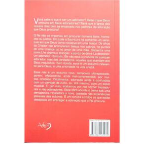 "Você sabe o que é ser um adorador? Sabe o que Deus procura em seus adoradores? Será que a igreja dos nossos dias tem se encaixado nos padrões da adoração que Deus procura? O Pai não se importou em procurar homens bons, honrados ou justos. Em toda a Escritura há somente um versículo em que Deus toma iniciativa em uma busca. Os olhos do Criador não procuraram beleza nos astros, na pureza de uma criança ou no amor de uma mãe. Somente uma coisa Lhe chama a atenção, a ponto de deixá-Lo desejoso: um adorador. Contudo, Ele não está à procura de qualquer adorador, mas dos verdadeiros, aqueles que atendam aos seus requisitos. Sem dúvida, esse é um assunto relevante para Deus, e uma prioridade na vida cristã. Esse não é um assunto novo, tampouco ultrapassado, porém, infelizmente, ainda mal compreendido por muitos cristãos. Fatalmente, adoração ainda é confundida com um período do culto, ou, até mesmo, com um estilo musical. E, por isso, acabamos por nos tornar bajuladores e não adoradores. Esta obra aborda o tema sob uma perspectiva reveladora e nova, baseada nas experiências pessoais das autoras. É um convite a todos os que estão desejosos em entregar a adoração que o Pai procura."