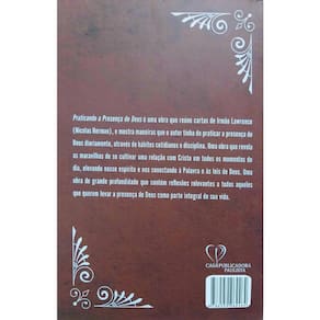 Praticando a Presença de Deus é uma obra que reúne cartas de Irmão Lawrence (Nicolas Herman), e mostra maneiras que o autor tinha de praticar a presença de Deus diariamente, através de hábitos cotidianos e disciplina. Uma obra que revela as maravilhas de se cultivar uma relação com Cristo em todos os momentos do dia, elevando nosso espírito e nos conectando à Palavra e às leis de Deus. Uma obra de grande profundidade que contém reflexões relevantes a todos aqueles que querem levar a presença de Deus como parte integral de sua vida.