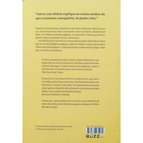 “Talvez este diário explique as coisas melhor do que eu jamais conseguiria. Se puder, leia. ” Depois de um término repentino com Matt Harrison, Katie encontra, na porta de sua casa, um pacote com um diário, deixado por Matt. Ao folhear aquelas páginas, ela descobre coisas que não esperava sobre o passado de seu namorado. Um diário para recomeçar é uma emocionante história de amor que se constrói página a página. Cada revelação é mais uma nuance sobre seus personagens. Cada descoberta é mais um fio a ligar vidas que o destino entrelaçou. E mais um ponto positivo para James Patterson: sua experiência com a escrita de thrillers policiais caiu muito bem aqui. O leitor nunca vai imaginar como a história de UM DIÁRIO PARA RECOMEÇAR termina. – The New York Times Patterson é um autor incrível (neste livro, sua escrita brilha pela forma como ele cria histórias dentro de histórias e versos). Esse salto de James Patterson para outro gênero literário não prejudica em nada sua reputação como mestre da ficção policial. – Publishers Weekly Dessa vez, James Patterson escreveu uma história de amor tão cheia de reviravoltas quanto qualquer thriller. – Revista People