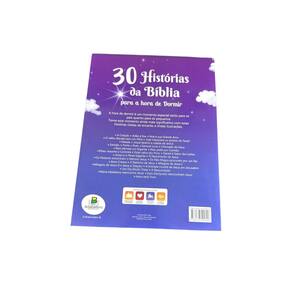 O livro 30 Histórias da Bíblia Para a Hora de Dormir, é um livro que irá inspirar sua criança, trará paz ao coração dela na hora de dormir, ao mesmo tempo que irá divertir o seu filho, também ensinará a ele sobre a história de Jesus. A hora de dormir é um momento especial tanto para os pais quanto para os pequenos. Torne este momento ainda mais significativo com essas histórias cheias de encanto e lindas ilustrações. . A Criação . Adão e Eva . Noé e sua Grande Arca . O velho Abraão tem um Filho . José interpreta os sonhos do Faraó . Moisés . Josué destrói a cidade de Jericó . Sansão, o Forte . Rute . Samuel ouve o Chamado de Deus . Davi derrota um Gigante . Elias pede por Comida . Eliseu assume o Controle . Ester salva seu Povo . Daniel é Salvo dos Leões . Jonas e o Peixe Gigante . O Nascimento de Jesus . Os Pastores encontram o Menino Jesus . Os Reis Magos procuram por um Rei . Jesus Cresce . O Batismo de Jesus . Milagres de Jesus I . Milagres de Jesus II . Jesus e Zaqueu . A entrada triunfal de Jesus em Jerusalém . Um Dia Muito Triste . A Ressurreição . Maria Madalena reencontra Jesus . Dois discípulos reencontram Jesus . Jesus está Marca: Não Informado Ean: 7794448699102
