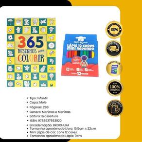 Contém : 1 unidade Livro Infantil 365 Desenhos para colorir + 12 unidades de mini lápis de cor