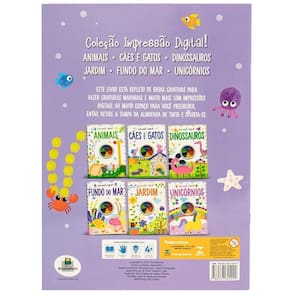 Livro Impressão Digital Unicórnios | Cães e Gatos | Dinossauros | Fundo do Mar | Jardim | Animais