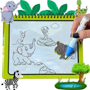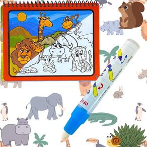 Adicione água ao pincel especial que acompanha o livro e pinte os desenhos para ver a magia das cores acontecer