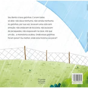 Seu Bento criava galinhas. E eram todas só dele: não dava nenhuma, não vendia nenhuma. As galinhas, por sua vez, levavam uma vida sem emoção: não andavam de bicicleta, não pulavam de paraquedas, não esquiavam na neve. Até que um dia... A monotonia acabou. Onde essas galinhas foram parar Ou melhor, onde esta história vai parar