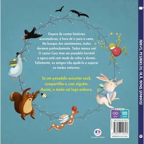 Depois de uma noite de histórias assustadoras, o bosque dos sentimentos está em silêncio - todo mundo dorme tranquilo. Todo mundo, menos o castor Caco. Um pesadelo terrível o acordou, e agora ele está com medo de voltar a dormir. Mas Caco não está sozinho: com a ajuda dos amigos, ele vai descobrir que dividir o que sentimos é uma forma poderosa de espantar o medo. Porque quando a gente fala sobre os pesadelos, eles logo perdem a força.