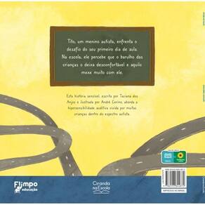 Autor: Taciana dos Anjos Tito, um menino a , enfrenta o desafio do seu primeiro dia de aula. Na escola, ele percebe que o barulho das crianças o deixa desconfortável e aquilo mexe muito com ele. Esta história sensível, escrita por Taciana dos Anjos e ilustrada por André Cerino, aborda a hipersensibilidade auditiva vivida por muitas crianças dentro do espectro . Editora: Ciranda na Escola Ilustrador: André Cerino Idioma: Português Páginas: 32 Dimensões: L 24.00 x A 24.00 x E 0.80 ISBN: 9786553844872 Linha Editorial: Ciranda na Escola - Literatura infantojuvenil Faixa Etária: + 4 anos Assuntos tags : Transtorno do espectro , Desenvolvimento, Emoções, Inclusão, Saudades, , TEA BISAC: Não Ficção Infantil / Saúde & Vida Cotidiana Encadernação: Brochura Acabamento: Laminação fosca