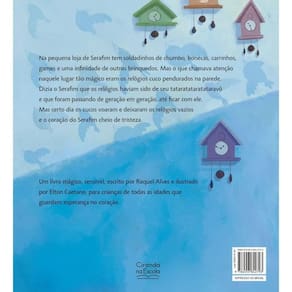 Autor: Raquel Alves Na pequena loja de Serafim tem soldadinhos de Cinza, bonecas, carrinhos, games e uma infinidade de outros brinquedos. Mas o que chamava atenção naquele lugar tão mágico eram os relógios cuco pendurados na parede. Dizia o Serafim que os relógios haviam sido de seu tataratataratataravô e que foram passando de geração em geração, até ficar com ele. Mas certo dia os cucos voaram e deixaram os relógios vazios e o coração do Serafim cheio de tristeza. Um livro mágico, sensível, escrito por Raquel Alves e ilustrado por Elton Caetano, para crianças de todas as idades que guardam esperança no coração. Editora: Ciranda na Escola Ilustrador: Elton Caetano Idioma: Português Páginas: 32 Dimensões: L 24.00 x A 26.00 x E 0.30 ISBN: 9786553842793 Linha Editorial: Ciranda na Escola - Literatura infantojuvenil Faixa Etária: + 6 anos Assuntos tags : Relógio, Brinquedo, Contos de fadas, Pássaros, Memória afetiva, Diversidade, Sentimentos, Amizade BISAC: Literatura Infantil / Família Linha de Produto: Literatura infantil Encadernação: Brochura Acabamento: Laminação fosca Material: Papel Marca: Ciranda Na Escola