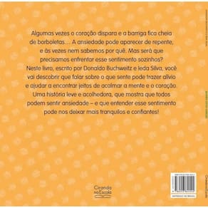 Algumas vezes o coração dispara e a barriga fica cheia de borboletas... A ansiedade pode aparecer de repente, e às vezes nem sabemos por quê. Mas será que precisamos enfrentar esse sentimento sozinhosNeste livro, escrito por Donaldo Buchweitz e Ieda Silva, você vai descobrir que falar sobre o que sente pode trazer alívio e ajudar a encontrar jeitos de acalmar a mente e o coração.Uma história leve e acolhedora, que mostra que todos podem sentir ansiedade - e que entender esse sentimento pode nos deixar mais tranquilos e confiantes