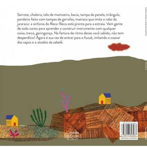 Serrote, chaleira, talo de mamoeiro, bacia, tampa de panela, triângulo, pandeiro feito com tampas de garrafas, matraca que imita o rabo da jararaca: a sinfonia do Reco-Reco está pronta para a estreia. Vem gente de todo canto para aprender a construir instrumento com qualquer coisa, treco, geringonça. Na fartura de ritmo desse vovô sabido, não tem desperdício Agora é sua vez de entrar para o fuzuê, imitando o coaxar dos sapos e o assobio da zabelê.
