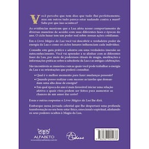 Você percebe que tem dias que tudo flui perfeitamente, mas em outros tudo parece estar nadando contra a maré? Sabe por que isso acontece? As evidências mostram que a Lua afeta nosso comportamento de diversas maneiras de acordo com suas diferentes fases e épocas do ano. O ciclo lunar tem um poder real sobre nossas ações cotidianas. Em o Livro Mágico da Lua você vai descobrir o verdadeiro poder da energia da Lua e como os ciclos lunares influenciam cada indivíduo. Consulte este guia prático e adentre em uma verdadeira imersão ao autoconhecimento. Você vai aprender a se alinhar com as diferentes fases da Lua, por meio de poderosos rituais de magia, meditações e informações práticas sobre a sabedoria da Lua e as antigas celebrações. São incontáveis as maneiras com as quais você pode trabalhar a energia da Lua e as orientações que poderá consultar. ? Qual é o melhor momento para fazer mudanças pessoais? ? Quando posso realizar com sucesso as tarefas que demandam uma alta dose de energia? ? Em qual época do ano é mais favorável iniciar uma relação afetiva e quais ritos podem ser feitos para aumentar as chances de um amor dar certo? Essas e outras respostas o Livro Mágico da Lua lhe dirá. Embarque nessa jornada celestial que lhe despertará uma profunda transformação no seu bem-estar físico, emocional e espiritual, alinhando os seus poderes ocultos à Magia da Lua. Ean: 9786587905433