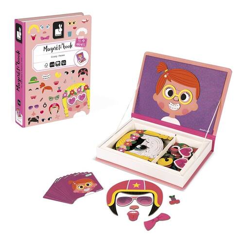 Livro Magnético Crazy Faces Meninas Com 65 Peças Em Madeira - Janod