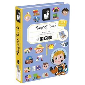Livro Magnético Profissões 48 peças - janod Com o livro magnético Profissões, a diversão é garantida Com 48 peças magnéticas, as crianças podem criar personagens das mais variadas profissões, seguindo os modelos ou soltando a imaginação. Astronauta, médico, policial e muito mais - todas as combinações são possíveis Como Funciona Ao abrir o livro, as crianças podem colocar os ímãs no lado magnético, que segura tudo no lugar. Perfeito para longas viagens de carro ou momentos de espera Com um design inteligente, o Magneti'book é fácil de transportar e pode ser armazenado como um livro na estante. Feito com materiais certificados FSC e outros materiais controlados, esse brinquedo é seguro e sustentável