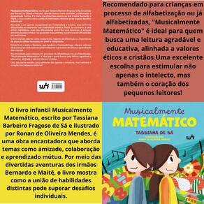 O livro infantil Musicalmente Matemático, escrito por Tassiana Barbeiro Fragoso de Sá e ilustrado por Ronan de Oliveira Mendes, é uma obra encantadora que aborda temas como amizade, colaboração e aprendizado mútuo. Por meio das divertidas aventuras dos irmãos Bernardo e Maitê, o livro mostra como a união de habilidades distintas pode superar desafios individuais. Bernardo é um garoto excepcional em matemática e música, mas enfrenta dificuldades em expressar sua criatividade artística. Maitê, ao contrário, é uma artista habilidosa com dificuldades para lidar com números. A solução encontrada pelos irmãos é se ajudarem mutuamente, transformando dificuldades em realizações. Com ilustrações vibrantes e texto envolvente, o livro explora valores como cooperação, respeito às diferenças e a importância de alianças sólidas baseadas em amor e integridade. Tassiana, que também é fonoaudióloga, oferece ainda valiosas dicas para pais e educadores potencializarem o processo de leitura e aprendizado das crianças.