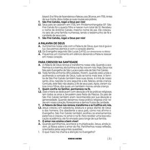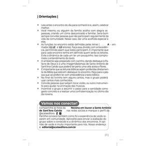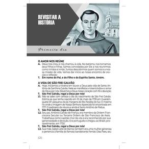 Subsídio devocional com nove encontros para rezar e refletir a vida de Santo Antônio de Sant’Ana Galvão, o famoso Frei Galvão. Faz parte da coleção de novenas comunitárias intitulada “Santos para os Brasil”, que traz as novenas dos santos/as e bem-aventurados/as que viveram no nosso país. Com certeza este roteiro ajudará sua comunidade eclesial a conhecer a vida do primeiro santo brasileiro. Que seu exemplo de vida cristã nos inspire a todos a perseverar no seguimento de Jesus.