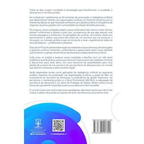 Organizadora: Camilla PinheiroAutor es :adriana Garcia; Camilla Pinheiro; Cristina Viana; Danielly Manochio; Esther Sanches Pitaluga; Dayane Rodrigues; Gustavo Otto; João Bosco de Barros; João Márcio Fernandes; Maísa Lemos; Paulo Marques; Rejane Albuquerque; Theandra Fernandes Drago; Warley Moraes Garcia.Edição: 1Paginação: 368ISBN: 9786588491300Acabamento: Brochura16x23Ano de Publicação: 2021Idioma: PortuguêsCondição do Item: NovoTipo de Narração: ManualTipo de Capa: ComumFormato: PapelSinopse:Todos os dias surgem novidades e tecnologias que transformam a sociedade, a advocacia e o mercado jurídico.Se multiplicam rapidamente as ferramentas de automação e inteligência artificial que desenvolvem tarefas nas organizações jurídicas; as novas ferramentas para o marketing digital; os aperfeiçoados softwares para gestão jurídica e inteligência de negócios; as preocupações com a privacidade e proteção de dados pessoais...Para alguns, essas novidades podem causar incômodo e até mesmo medo. Outros, passam indiferentes e alheios a tudo isso, na esperança de que seja apenas uma marola passageira e inofensiva. Os advogados de sucesso, no entanto, observam atentamente e sabem que esses são sinais de um tsunami que vai provocar a disrupção no mercado jurídico e que os conclama a rever urgentemente todos os seus paradigmas - profissionais e pessoais.Essa obra é fruto da atenta observação da realidade e da perseverança de advogados e gestores jurídicos militantes, conhecedores e apaixonados pelos novos desafios que envolvem a gestão de escritórios de advocacia e departamentos jurídicos.Cada autor se propõe a explorar essas novidades e desafios com um viés tanto acadêmico quanto prático, posto que vivenciam tudo isso em seu cotidiano. O intuito é descortinar para você, leitor, um novo horizonte de possibilidades para uma gestão de sucesso da sua carreira e do seu escritório de advocacia em um mundo que está em constante e veloz transformação.Serão explorados temas como aplicações da inteligência artificial ao segmento jurídico, impactos da automação nas organizações jurídicas, o papel do líder no crescimento do escritório de advocacia, a importância da gestão financeira nos escritórios, o marketing jurídico e o Novo Provimento 205/2021, a adequação de escritórios de advocacia à Lei Geral de Proteção de Dados, dentre tantos outros temas de equivalente importância para uma advocacia bem-sucedida.O convite é para que você reveja seus paradigmas, abandone aquilo que não te faz crescer e adote novas práticas capazes de levar sua advocacia ao próximo nível.