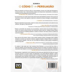 Livro: O Código da Persuasão: Como o Neuromarketing pode ajudar você a persuadir qualquer pessoa, a qualquer hora, em qualquer lugarDesde o início dos tempos, os humanos tentam influenciar uns aos outros. Acadêmicos, estudiosos e pesquisadores desenvolveram inúmeras teorias de persuasão, mas bilhões de dólares ainda são desperdiçados em anúncios ou campanhas que não conseguem atrair a atenção ou motivar as pessoas a agirem.Fruto de quase duas décadas de pesquisa sobre o efeito da propaganda e das mensagens de vendas no cérebro humano, Dr. Christophe Morin e Patrick Renvoise oferecem o primeiro modelo abrangente de persuasão baseado nas pesquisas mais recentes em neurociência, psicologia de mídia e economia comportamental. Seguindo os passos de Daniel Kahneman e Richard Thaler ambos ganhadores do Prêmio Nobel de Economia, em 2002 e 2017, respectivamente , os autores revelam que as mensagens persuasivas devem chegar primeiro ao cérebro primitivo, o sistema cerebral mais antigo, porém o mais dominante no processo de persuasão.Depois de publicarem Neuromarketing: Understanding the Buy Buttons in Your Customers Brain, em 2007, e treinarem mais de 200 mil executivos em todo o mundo desde então, Morin e Renvoise explicam em termos simples como mensagens persuasivas afetam funções cerebrais críticas como atenção, emoções, esforço cognitivo e tomada de decisão. E, o mais importante, revelam um passo a passo simples chamado NeuroMap, que fornece a maneira mais eficaz de criar mensagens que podem persuadir qualquer pessoa, a qualquer hora, em qualquer lugar.Em O Código da Persuasão, você descobrirá:- O funcionamento de dois sistemas cerebrais concorrentes que gerenciam nossas respostas a qualquer mensagem persuasiva: o rápido Sistema 1 primitivo versus o lento Sistema 2 racional - Os únicos 6 estímulos persuasivos que se comunicam diretamente com o cérebro primitivo- Os 4 passos para maximizar suas chances de persuadir sistematicamente- Os 6 elementos de persuasão e os 7 catalisadores de persuasão que explicam cientificamente a química por trás da persuasão- Mais de 30 casos de negócios que ilustram a eficácia do modelo- E 293 referências científicas que embasam o NeuroMapO NeuroMap já foi aclamado por muitas empresas de sucesso como Siemens, TransUnion, Epson, GE, PayPal e muitas outras. Com O Código da Persuasão, você aprenderá a se tornar um excelente persuasor usando um processo comprovado, mas simples, baseado em ciência de ponta. Um pôster do NeuroMap está incluído no verso desta capa.Título: O Código da PersuasãoSubtítulo: Como o Neuromarketing pode ajudar você a persuadir qualquer pessoa, a qualquer hora, em qualquer lugarAutores: Christophe Morin e Patrick RenvoiseNº de Páginas: 352Selo: DVS EDITORAEdição: 1Data de publicação: 28/02/2023Idioma: portuguêsCondição do item: novoTipo de narração: manualTipo de capa: comumFormato: PapelAltura cm : 23,0Largura cm : 16,0Lombada cm : 1,8ISBN: 978-65-5695-077-8