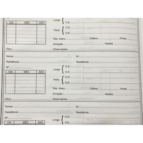 Livro Ótica Registro Receita Ótica 200 Folhas 01 livro de ótica com 200 folhas Finalidade: Registro de receitas nas óticas.Capa Dura e PretaMedias: 33x1,5x23 cmPeso: 1,5 kg Marca: Terceiros