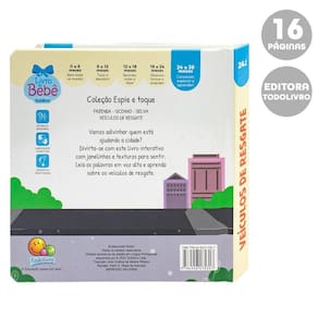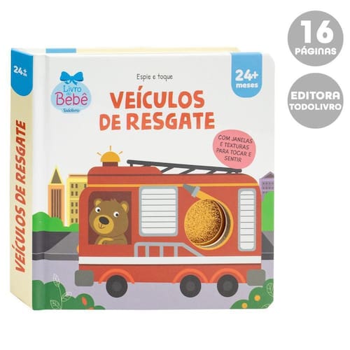 Livro para bebê espie e toque veículos de resgate vamos adivinhar quem está ajudando a cidade Divirta-se com este livro interativo com abas para levantar e texturas para sentir. Leia as palavras em voz alta e aprenda sobre os veículos de resgate. Características: - editora: todolivro; - tamanho aproximado do livro: 18 x 18cm; - habilidades desenvolvidas: estímulo sensorial, habilidades cognitivas e desperta a criatividade; - acabamento: cartonado com janelas e texturas toque e sinta; - faixa etária: 24 a 36 meses; - quantidade de páginas: 16; - tipo de capa: dura; -imagens meramente ilustrativas- atenção: a cor do produto pode variar de acordo com o monitor atenção: o fabricante pode alterar a cor de alguma parte do produto sem aviso prévio.