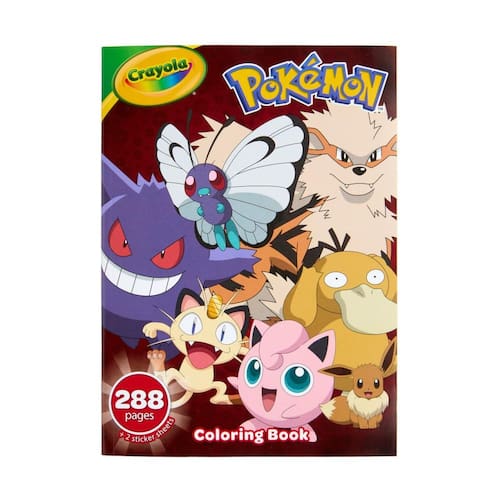 Crayola Livro de colorir Pokemon gigante (288 páginas), 2 folhas de adesivos, livro de colorir para crianças e adultos, atividade de viagem, presente Pokémon para crianças, 3+