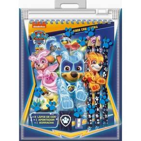 Colorir é muito mais divertido com a ''''Patrulha Canina Colorindo com Alegria'''' O kit vem com 3 lápis de cor, um apontador, uma borracha e desenhos para colorir os filhotes mais corajosos da TV. É perfeito para soltar a imaginação e colorir com muita diversão