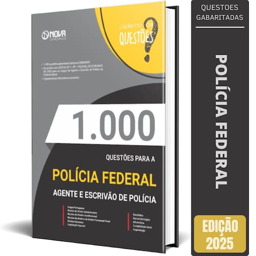 Livro de Questões Gabaritadas PF 2025 - Agente e Escrivão de Polícia Federal Livro 1.000 Questões Gabaritadas PF - Agente e Escrivão de Polícia Federal -LV221-25-1000-QUESTOES-PF-AG-ESC-IMP Instituição Polícia Federal - PF Cargo s Agente e Escrivão de Polícia Federal Estado Nacional Nível Nível Superior Edição Oficial Páginas 168 Disciplinas: Língua Portuguesa Noções de Direito Administrativo Noções de Direito Constitucional Noções de Direito Penal e de Direito Processual Penal Direitos Humanos Legislação Especial Estatística Raciocínio Lógico Informática Contabilidade Geral Arquivologa Ean: 7908428812454