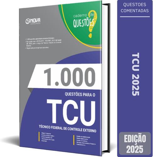 Livro de Questões Gabaritadas TCU 2025 - Técnico Federal de Controle Externo Livro 1.000 Questões Gabaritadas TCU - Técnico Federal de Controle Externo -LV228-25-1000-QUESTOES-TCU-TECNICO-IMP Instituição Tribunal de Contas da União - TCU Cargo s Técnico Federal de Controle Externo Estado Nacional Edição Oficial Páginas 152 Disciplinas: Língua Portuguesa Noções de Língua Inglesa Direito Constitucional Tecnologia da Informação Legislação Noções de Administração Direito Administrativo Gestão de Contratos Execução Orçamentária e Financeira Controle Externo