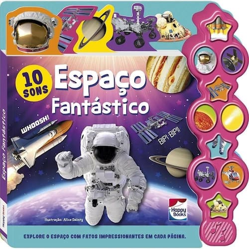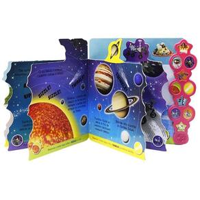 WHOOSH! BIP! CRACKLE! Aprenda tudo sobre o espaço com este livro barulhento e cheio de fatos. Com dez sons legais e guias moldadas fáceis de usar, este livro é a introdução perfeita para conhecer o espaço sideral.