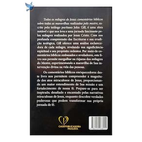 todos os Milagres de Jesus: comentários bíblicos sobre todas as maravilhas realizadas pelo mestre, escrito pelo teólogo puritano John Gill, é uma obra notável e que nos leva a uma jornada fascinante pelos milagres realizados por Jesus Cristo. Com sua profunda compreensão das Escrituras e sua erudição teológica, Gill oferece uma análise esclarecedora de cada milagre espiritual e seu propósito redentor. Por meio de comentários bíblicos embasados e reveladores, este livro nos permite mergulhar na riqueza dos milagres do Mestre, experimentando a maravilha de sua intervenção divina na vida das pessoas. Os comentários bíblicos enriquecedores deste livro nos permitem compreender a magnitude dos atos miraculosos de jesus, proporcionando um maior entendimento de sua missão e um fortalecimento de nossa fé. Prepare- se para ser inspirado, desafiado e encantado pelas narrativas miraculosas de jesus, enquanto descobre verdades poderosas que podem transformar sua própria jornada de fé.