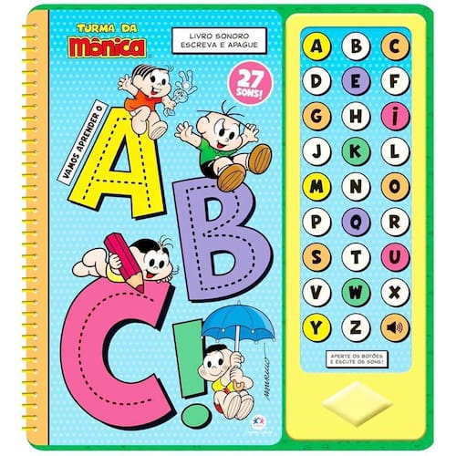 Qual é o som do avião E do barco Aprenda o alfabeto, enquanto ouve diferentes sons e faz atividades no decorrer das páginas. Use a caneta para escrever e, depois, apague com um pano seco.