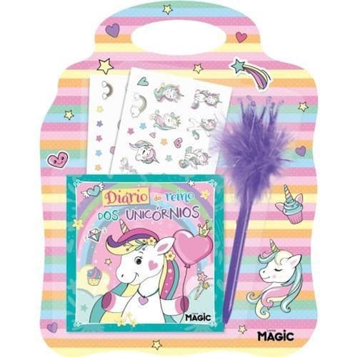 Agora você pode registrar os seus segredos neste incrível livro-diário Escreva sobre sua vida, sua família e seus amigos, usando uma linda caneta, e decore as páginas com os adesivos de unicórnios.