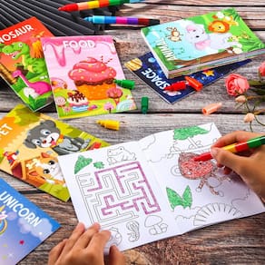 Características: Design criativo: Inspirado em nosso elemento fofo para festas, o design é autêntico e outros elementos atraentes são adicionados, o estilo geral é fofo e interessante, as crianças vão adorar, adequado para atividades escolares em sala de aula. Presentes para crianças: Estes livros de colorir para crianças são mais adequados para crianças porque os designs divertidos são suficientes para chamar sua atenção. As crianças ficarão encantadas quando você presentear estes mini livros de colorir por . Também é ótimo como presente de aniversário ou recompensa para seu filho; também ótimo como prêmio de concurso. Especificações: Material: papel Cor: como mostrado na imagem. Tamanho: Livros de colorir: 17 x 12 cm A embalagem inclui: 12/24/48/60 x mini livros de colorir Observações quentes: Considere uma pequena diferença de tamanho devido à medição manual. A cor pode existir uma pequena diferença devido a diferentes exibições de tela. - O pacote inclui: você receberá mini livros de colorir em 12 estilos. Existem 6 páginas em cada livro de colorir, 72 padrões diferentes no total, a quantidade é suficiente para atender às suas necessidades de bricolage, as crianças ficarão muito animadas para vê-lo, colorir imediatamente, deixe seus filhos brincarem o dia todo - Significado de colorir: o pequeno livro de atividades para colorir para crianças pode exercitar o reconhecimento de cores e a capacidade prática das crianças, além de permitir que as crianças expressem o mundo que veem através da coloração. O livro de colorir de viagem inclui jogos divertidos de labirinto e também é adequado para ajudar as crianças a se expressarem e cultivarem a conscientização. Capacidade intelectual - Tamanho adequado: cada livro de desenho a granel para crianças mede cerca de 17 x 12 cm, o que é um bom tamanho para as mãos pequenas das crianças. Fácil de carregar, cada livro é leve, você pode levá-lo ao ar livre, escola, viagens, festa, piquenique e brincar com amigos. E você pode se encaixar na maioria das sacolas temáticas de presente de festa de aniversário - Material confiável: nossos livros de colorir a granel para crianças são feitos de papel de qualidade, que não é fácil de rasgar; as páginas internas são impressas em ambos os lados; os livros de atividades para colorir ajudam crianças e crianças a desenvolver habilidades essenciais, incluindo força das mãos, concentração, estimulação da criatividade e coordenação motora fina e aprendizagem sobre diferentes elementos - Amplamente aplicável: estes livros de colorir a granel para crianças fazem de qualquer festa um sucesso, estes pequenos livros de colorir podem ser um presente para o seu filho para as atividades de volta às aulas, atividades de pintura DIY em sala de aula, presente de graduação etc.; também lembrancinhas de festa muito adequadas para crianças de 4, 5, 6, 7, 8, 9, 10, 11, 12 anos